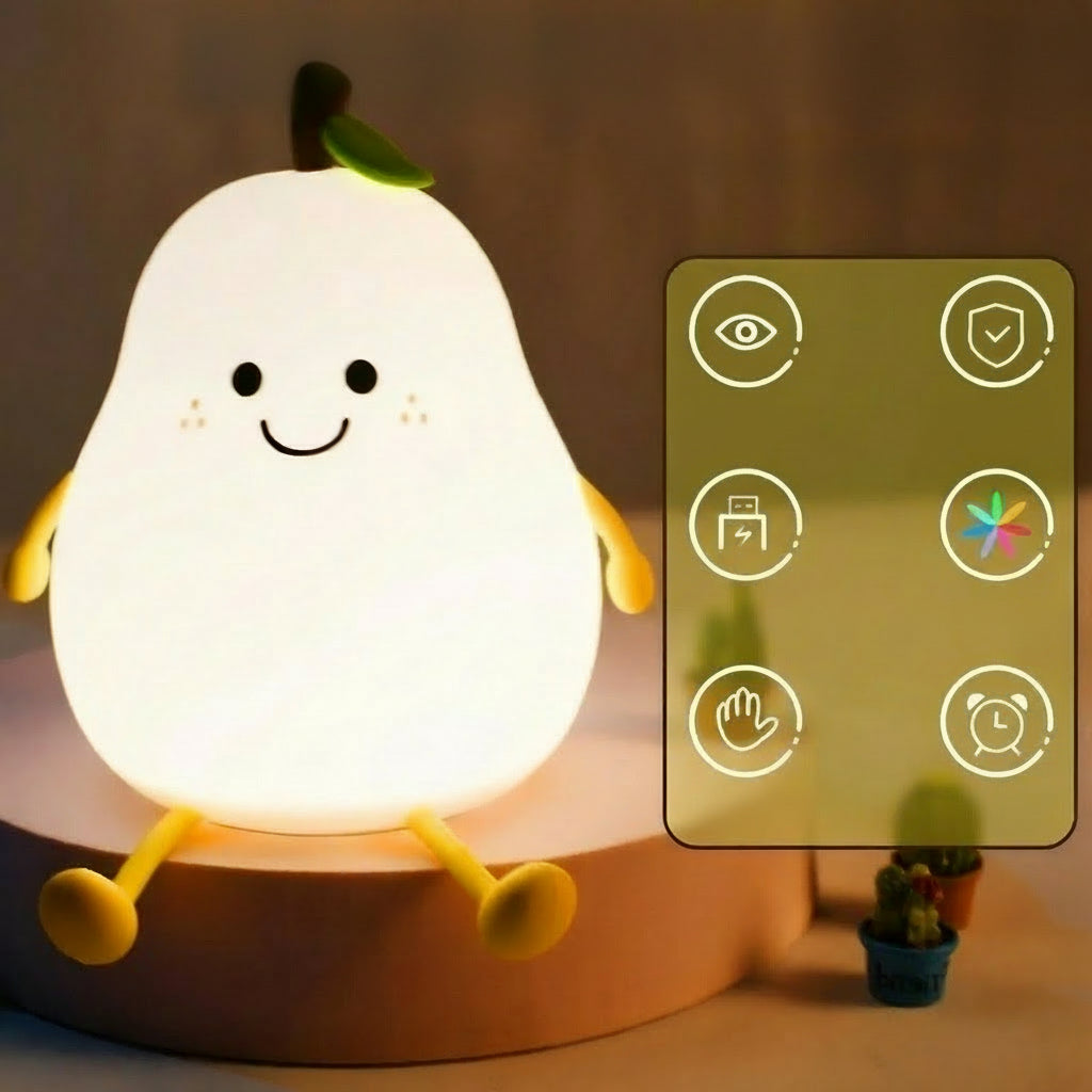 Parfaite pour accompagner les nuits, les siestes ou embellir la chambre, cette veilleuse poire devient rapidement un incontournable du rituel du coucher.